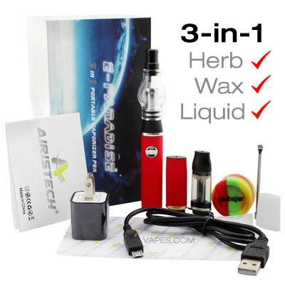 The E-Paradise kit comes in 3 colors: red, white, and black. Perfect for the new vaper, or the experienced tiny vape fan. This popular 3-in-1 Vape Pen kit by Airistech includes everything you need to vape dry herbs, wax, oils, and liquids.